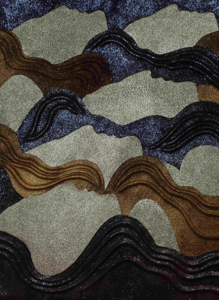 L’exploration, la recherche et développement, permettent de réinterpréter les techniques traditionnelles et de les transposer au cuir, révélant de nouvelles formes d’assemblage et de composition.